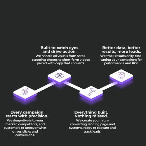 We set up and run a complete ad system that brings qualified leads straight to your business. From ad creation to landing page to campaign management.